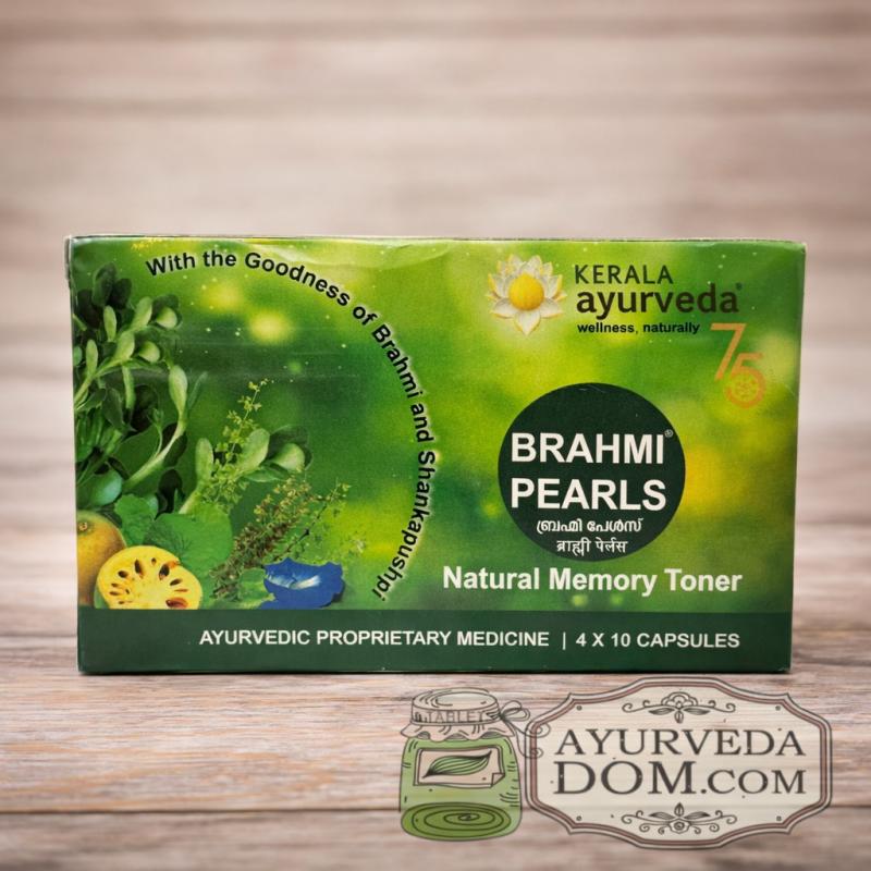 Брахми Перлс (Brahmi Pearls) — аюрведический нейротоник в форме масляных капсул, предназначенный для поддержки когнитивной функции, памяти и эмоционального баланса. Основан на традиционной рецептуре с травами медхя расаяна — растениями, улучшающими работу мозга, и очищенным гхи, как носителем активных компонентов. Препарат рекомендован при умственном переутомлении, тревожности, расстройствах сна и снижении концентрации.