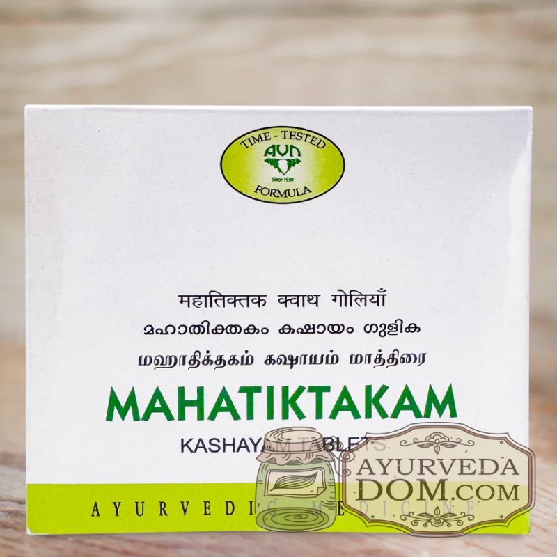 Mahatiktakam Kashayam AVN — классическая аюрведическая формула, относящаяся к категории тикта кашаям («отвары горьких трав»). Этот препарат применяется для очищения организма, нормализации работы печени и кожи, а также для устранения хронических воспалительных процессов. Горькие растения, входящие в состав, традиционно считаются мощными детоксикантами, способными глубоко очищать ткани (дхату) и восстанавливать баланс дошей, особенно Питты.